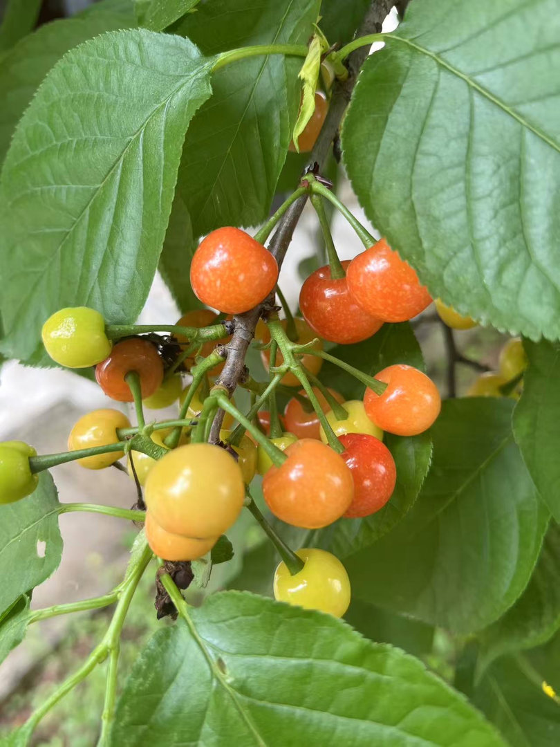 我的总结是,去大邑山上到了就是拖个椅子找个阴凉地方喝水打瞌睡,来龙泉,就是要换个工作服下田干活…… 今天来了老爸就说,看看樱桃,把比较熟的摘了,然后挂防鸟的网。看着火爆爆的太阳,我默默拿起梯子干活。长时间仰头干活,对我这种颈椎病来说可真不是件轻松活,一会儿我就有点轻微的恶心感。
